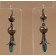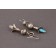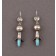 This is quite a unique pair of squash blossom earrings with beautiful little drops of turquoise coming out the bottom. They are for pierced ears with hook fasteners. The length from the bottom of hook to the end of drop is 1 3/4”. We're dating them circa 1950.