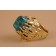 Here is a major Loloma ring of lost wax cast gold surrounding a large, natural Morenci turquoise cabachon. This ring was made by Loloma in 1974 as a special order for a Phoenix doctor. Width acoss top 1 3/8“. Top of ring above shank 1“. Size 8.