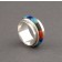 Here is a quintessential Charles Loloma outside inlay ring. This piece is silver with inlay of all the main stones that Charles Loloma used - turquoise, coral, lapis and wood. The ring is ca. 1975, and it is signed "Loloma." It is ring size 7 1/2" and it measures 5/8" in width.