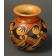 This delightful jar is Dextra Quotskuyva's interpretation of classic Nampeyo family motifs. On this well-formed, polychrome vessel, Dextra has painted bird or bat wings above parallel feathers. It also has a delicate flared neck and rounded walls. This jar dates ca 1980, and the dimensions are 4" diameter x 4 1/4" height. It is signed "Dextra" with corn.