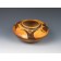 A polychrome jar by Nampeyo. This lovely jar was painted in dark red and black on yellow walls. Two creatures, possibly mice, and a pair of leaf and bud motifs are on the upper shoulder of the jar. This jar has a real folk art quality to it with the mice in the field and the plants - a design that is not seen often in Nampeyo's work. Old chips on the interior of rim; no restoration. ca 1905-1910. 7 3/8" diameter x 3 1/8" height.