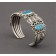 If you would like to see a traditional-style bracelet of high-grade natural turquoise, look no further. For this stunner, Perry Shorty used three high-grade Red Mountain turquoise stones that we supplied him and mounted them into a splendid bracelet of silver, entirely hand- decorated with repousse, stamping, twisted wire and beads. The bracelet is signed "P. Shorty" and the dimensions are 5 3/4" inside circumfrence x 1" opening. We had three more high-grade Red Mountain turquoise stones that Perry used in a very similar but a little bit smaller piece. If you'd like to see that one, just let us know.