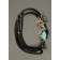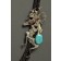 Here is another bolo with a figure on it that comes directly out of Raymond Sequaptewa’s dreams. Raymond has entitled this bolo, "Cloud Person." The otherworldly tufa cast silver figure has turquoise on his back that is set in a gold bezel. The figure has a pipestone face, a turquoise eye, and sinew (a waxy twine) hair. The bolo has large pointy tips that look great with the figure. The length of the figure is 4 1/4" and the width is 1 7/8" It is signed "Sequaptewa"